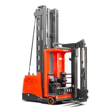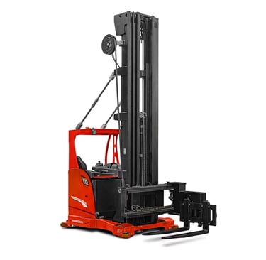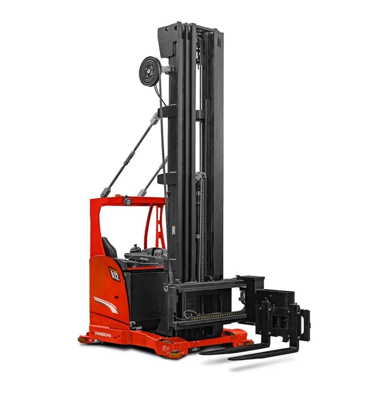 Los pasillos angostos requeridos para las operaciones y la bifurcación altura de elevación de hasta 12,26 metros maximiza el espacio disponibilidad de sus almacenes. El mástil de elevación alta cuenta con una gran capacidad de carga y eficiencia de apilamiento mejorada. El motor de la bomba de aceite de CA de alta potencia y las bombas de engranajes silenciosas de gran desplazamiento se utilizan para aumentar la velocidad de elevación y descenso, así como su